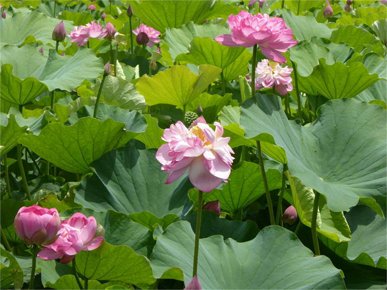 ハスやヨシが風になびく水辺の風景は住民憩いの場として親しまれています。