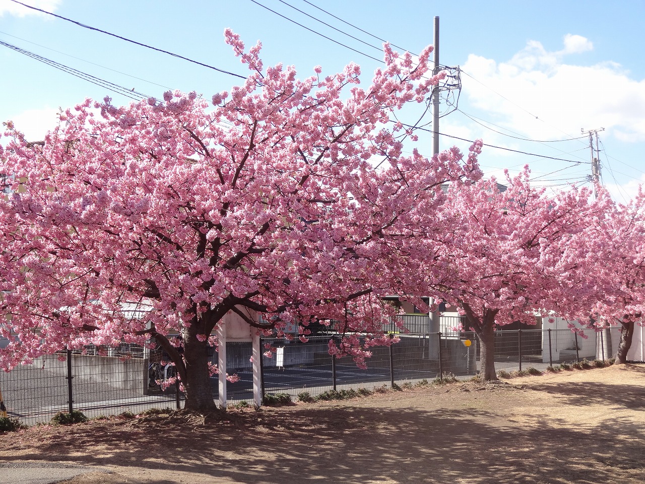 河津桜(カワヅザクラ)、大寒桜(オオカンザクラ)、染井吉野(ソメイヨシノ)の順に咲きます。