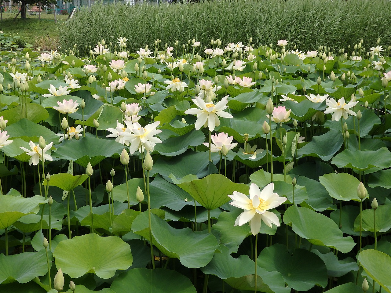 第1蓮池に隣接する芝生広場。